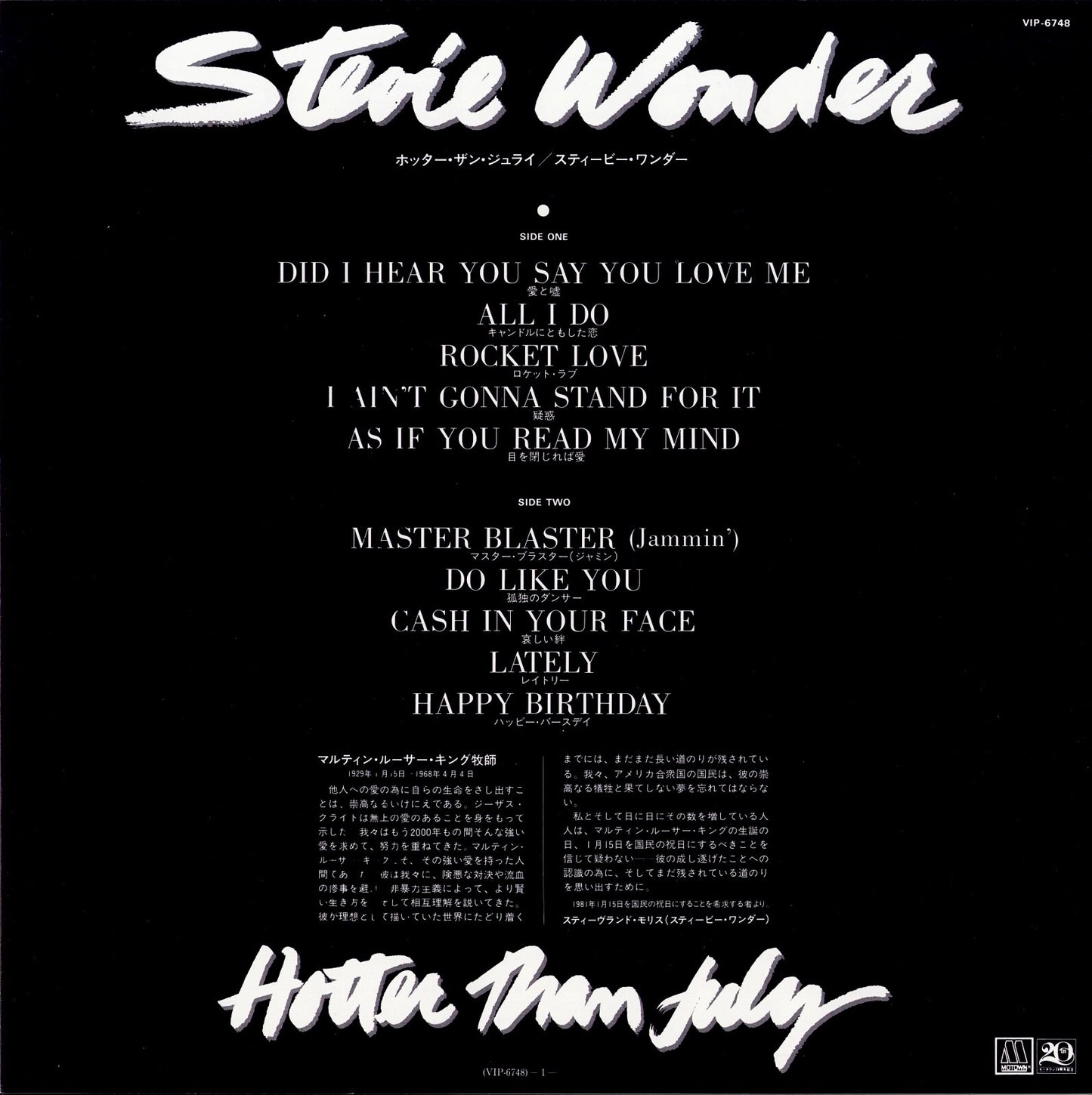Stevie Wonder - Hotter Than July ‎(Vinyl LP) JAPAN
