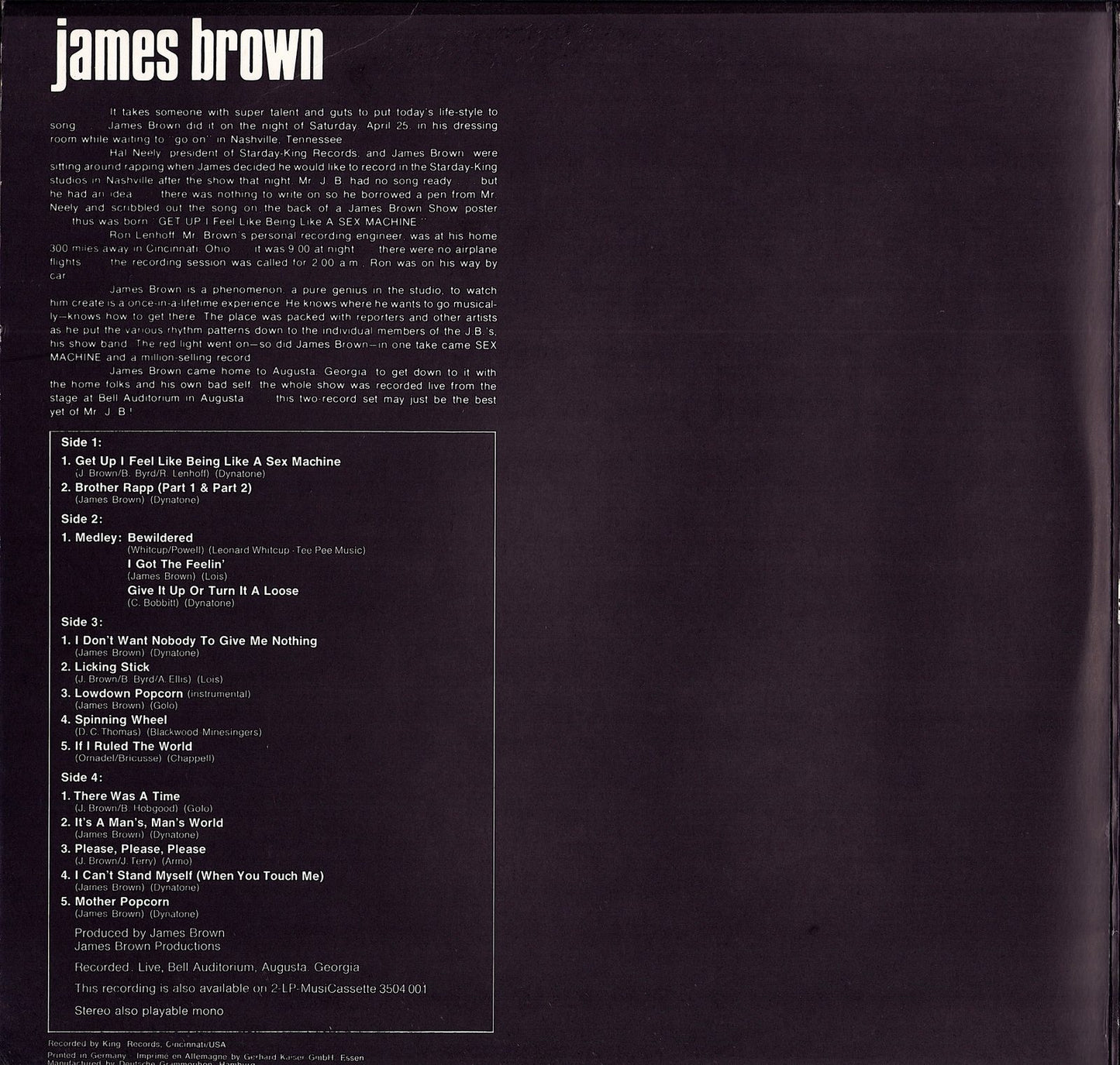 James Brown – Sex Machine (Recorded Live At Home In Augusta, Georgia With His Bad Self) (Vinyl 2LP)