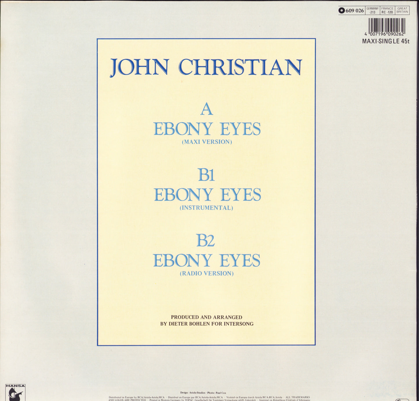 John Christian - Ebony Eyes (Vinyl 12")