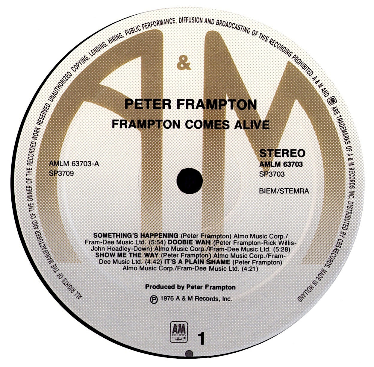 Label: A&M Records AMLM 63703