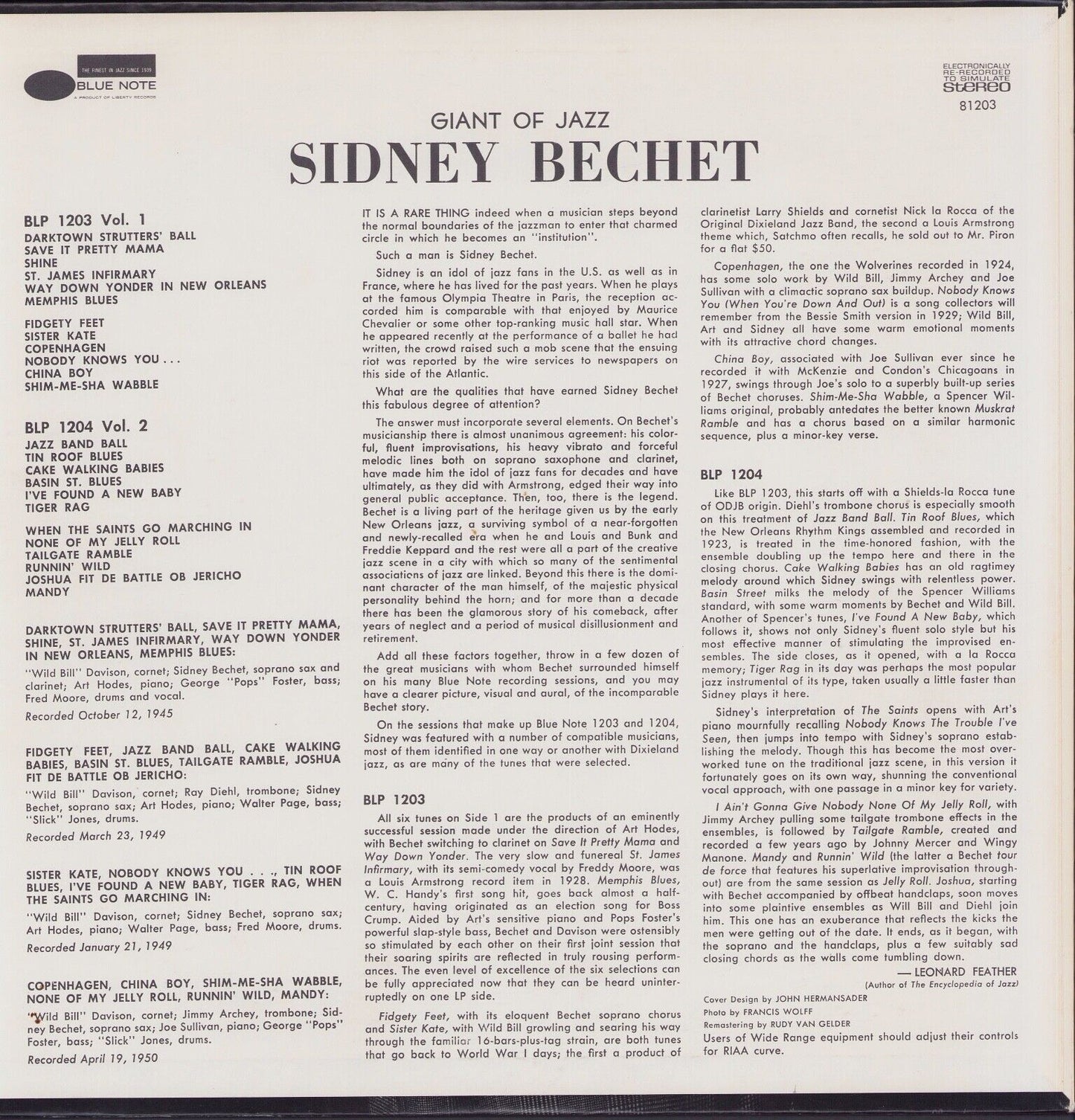 Sidney Bechet With "Wild Bill" Davison And Art Hodes - Volume 1